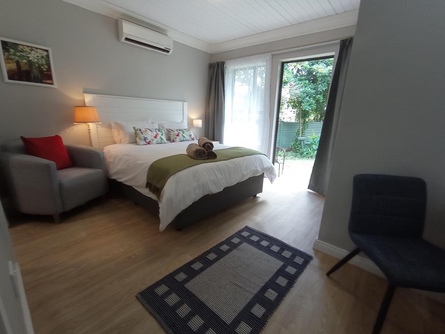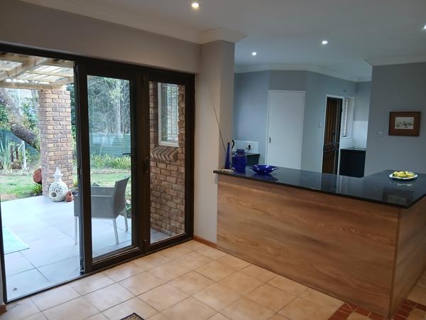 The open plan living area has a new granite top kitchen and gas /electric stove. A folding door opens on a patio and takes you into the garden. The main bedroom has air conditioning and a walk in cupboard (presently used as a kitchenette for Air B&B rental).The separate open plan flatlet on two floors has a staircase.