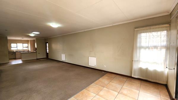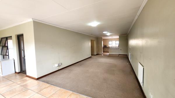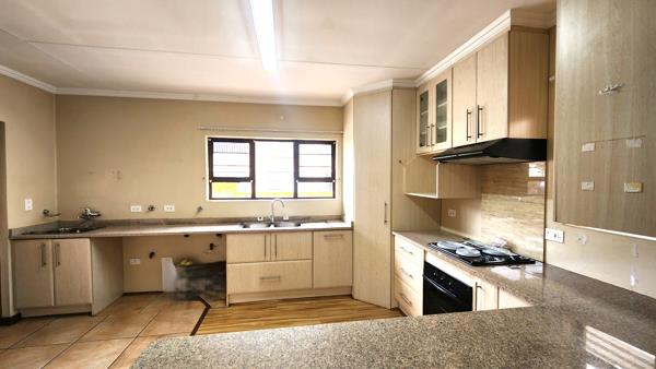Neat open plan kitchen with ample cupboards and space for appliances.