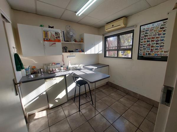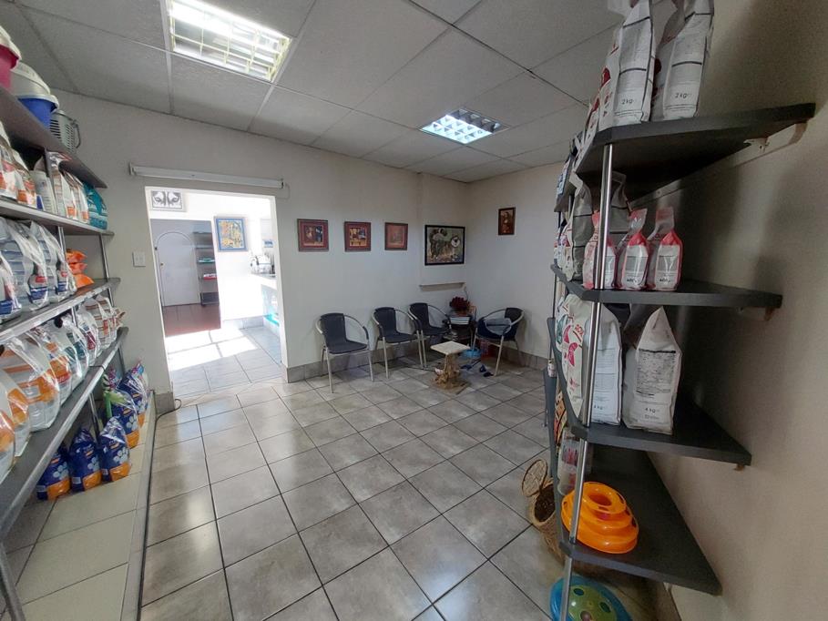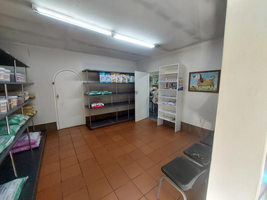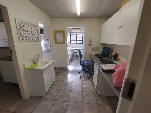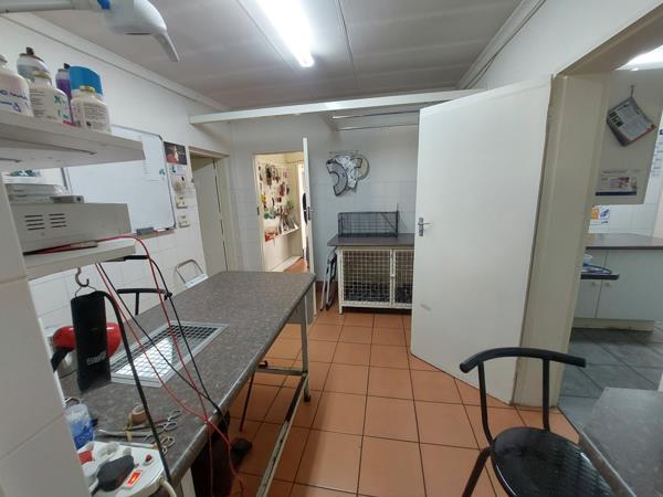 4) Business section of the property has special business rights (vet clinic) however one can apply for other type of suitable business rights. This part of the property offers a reception area, 2 x huge client waiting rooms /lounge areas, kitchenette, staff/client toilet, offices, various consultation rooms, lab /surgery rooms and rooms for storage- and pet rooms. Under roof stoep area. Outside toilet and storage room. Ample designated parking bay areas.
