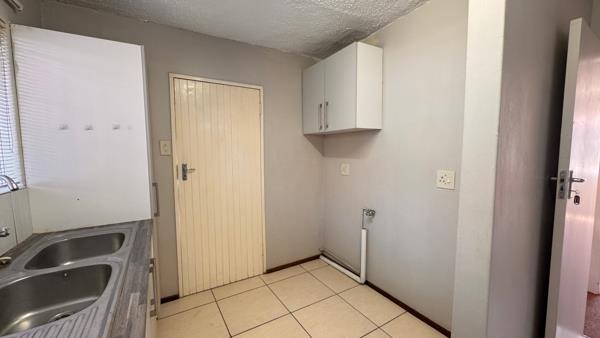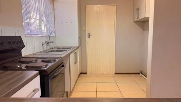 A covered patio with a louvered roof opens onto your own private, walled gardenideal for outdoor relaxation. The unit also includes a double enclosed steel carport and features good security with electric fencing, and burglar bars