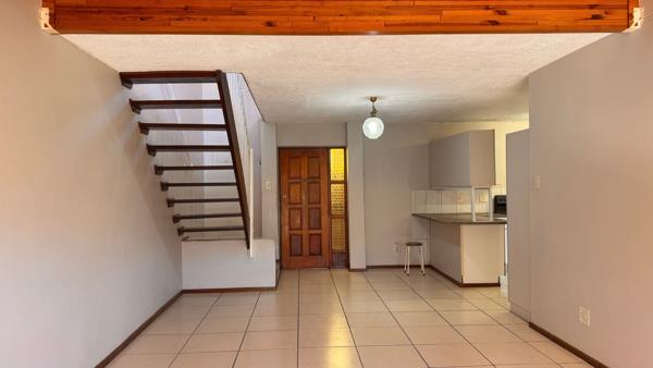 This well-sized 3-bedroom, 2-bathroom duplex is situated in the popular La Paradise complex in Garsfontein. The layout includes a large open-plan lounge and dining area with lofty ceilings, plus an upstairs living space ideal as a TV room or study.