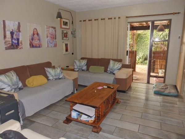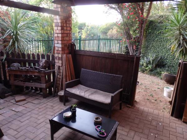 The neatly enclosed garden has an undercover patio and a braai. The views of nature looking directly on to the spruit with an abundance of bird life is breath taking. There is a communal grassy area ideal for children and pets and access to the spruit for leisurely walks with your pets.