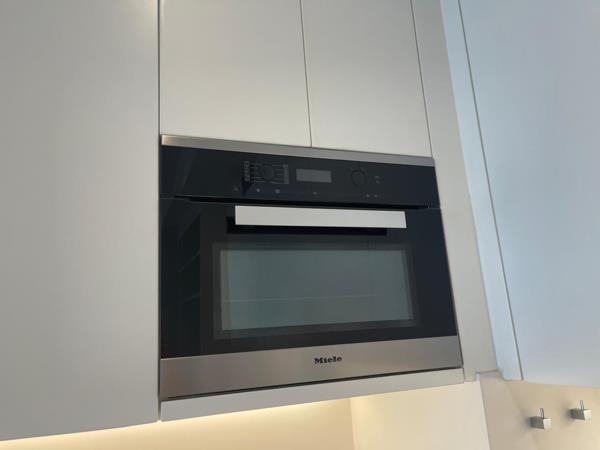 Cook in a Miele under-counter oven, with electric hob and extractor.