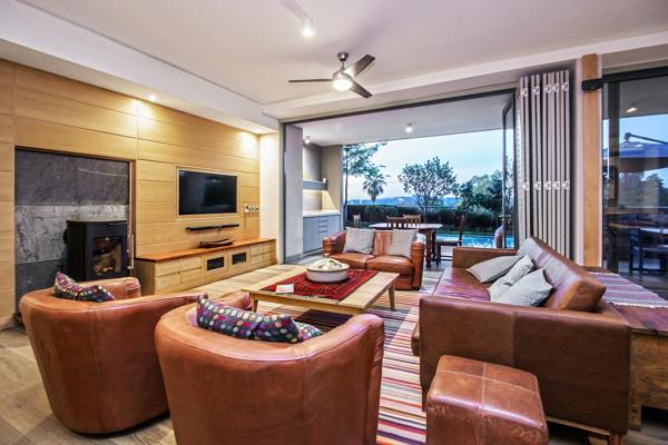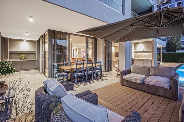 Once you enter, the seamless integration of bespoke finishes and world-class design is undeniable and breathtaking. Expansive open-plan living spaces flow effortlessly onto an oversized entertainers patio, where a striking lap pool, built-in braai, beautiful landscaped garden and uninterrupted views create the perfect backdrop for alfresco living. Floor-to-ceiling glass doors blur the lines between indoors and out, allowing natural light to flood the space while ensuring a sense of tranquility and seclusion.