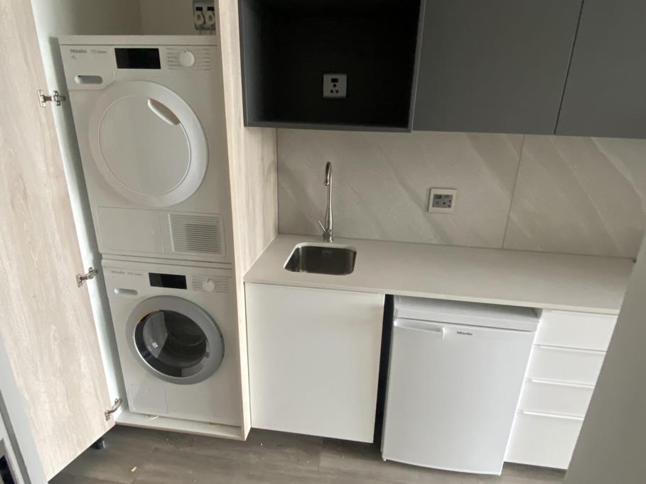 A standout feature of this unit is your own private balcony, where you can enjoy panoramic vistas. It also comes equipped with high-end finishes, including top-of-the-line appliances and a Smeg Prep Bowl.
