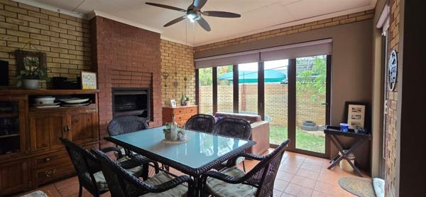 An enclosed patio with a built-in braai opens from the lounge and onto the garden, which offers a heated pool with a safety cover.