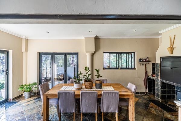 This refurbished open plan masterpiece is well designed with lounge and built-in fireplace, dining area and braai room opening up onto a patio deck with a fantastic view onto The Moreleta Kloof Nature Reserve which is located adjacent to Glossa Estate.