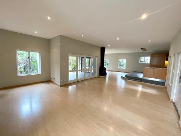 Inside, the residence unfolds with bright, open-plan living spaces designed for seamless flow. A welcoming lounge with a wood-burning fireplace to keep warm on cooler evenings, connecting effortlessly to the dining area, open plan kitchen with granite countertops, and a separate scullery and laundry. Stacked doors extend these spaces outdoors to a covered patio overlooking a lush, private garden the perfect backdrop for both relaxed family moments and grand entertaining. Parking is no concern, with an extra-length double garage offering direct access to the home, plus additional space for multiple vehicles.