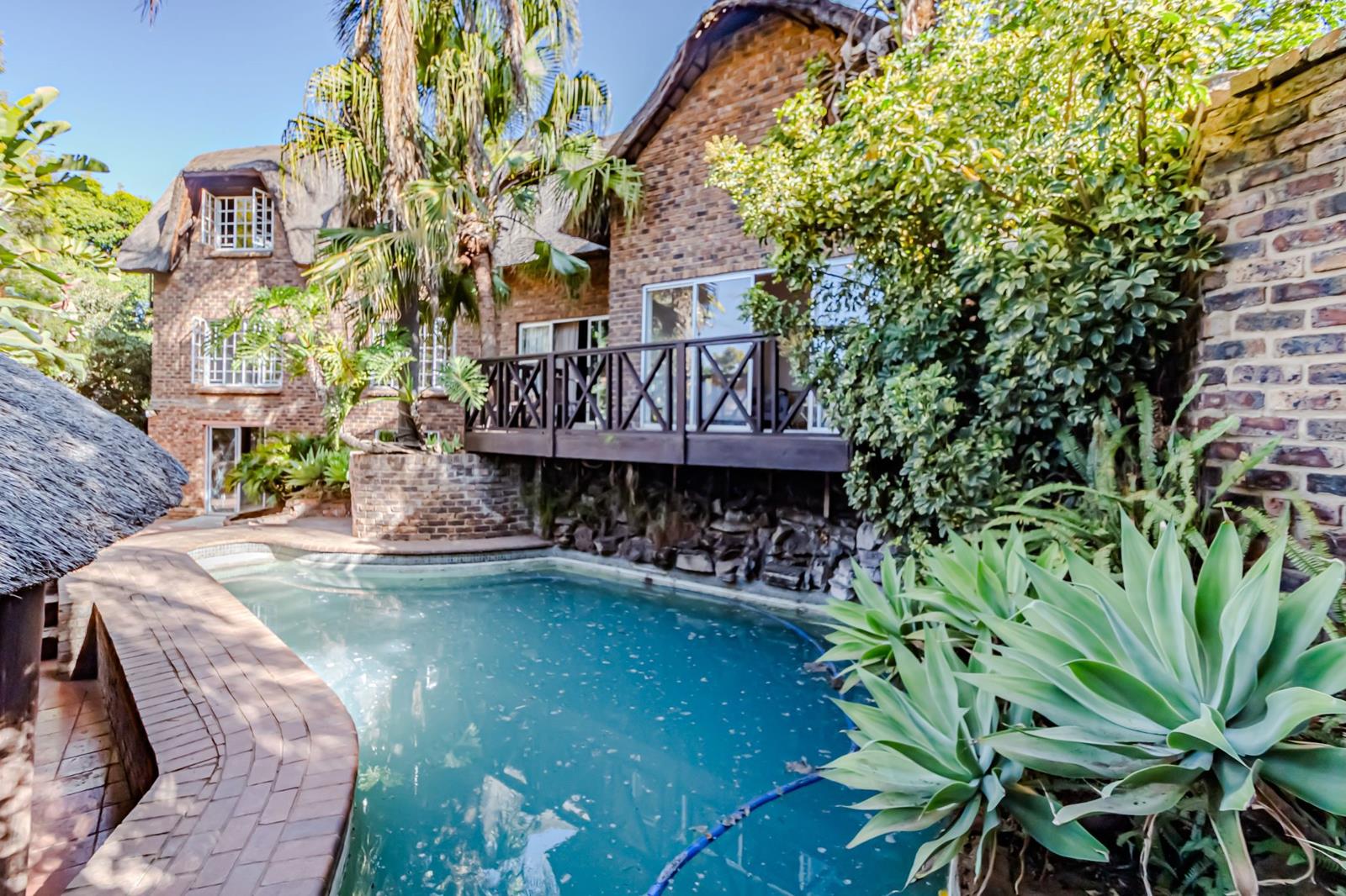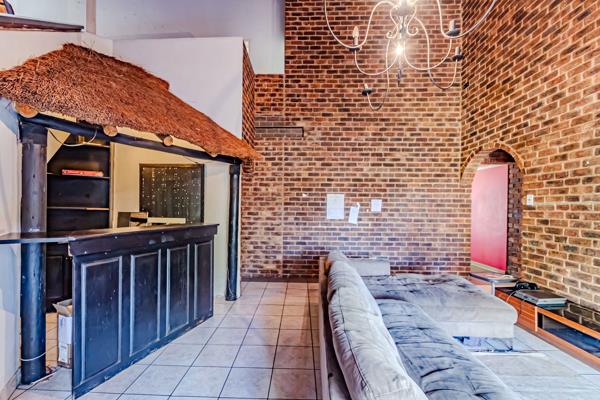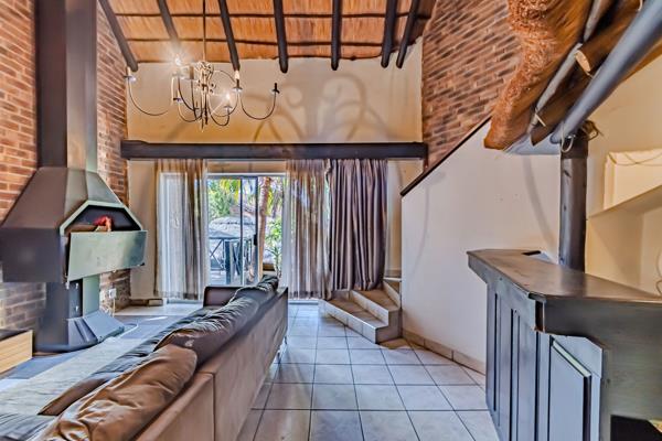 Lodge like thatch roof in security village. This spacious double-storey property with a thatched roof is located in the highly sought-after, boomed off Moreleta Village Estate. It offers a lodge-like ambiance and endless possibilities for entertainment, business, relaxation, or family living.