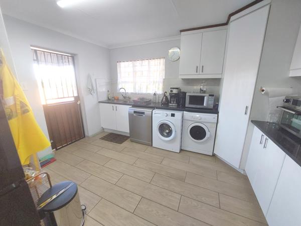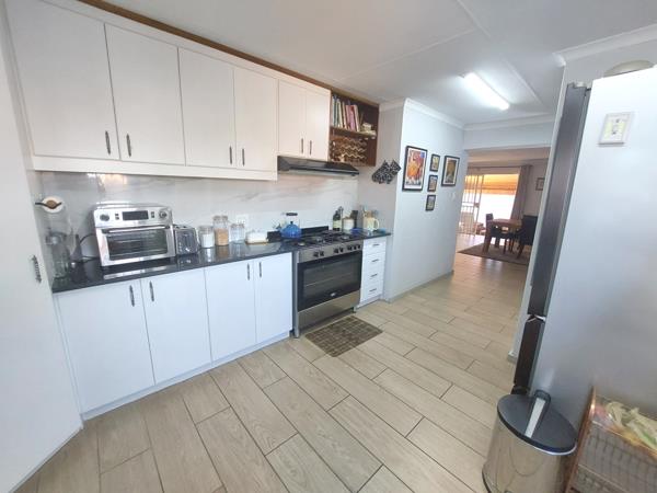 Stunning kitchen with breakfast nook with space for double fridge and 3 appliances leading to court yard area.