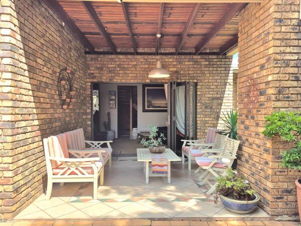 Flowing from the formal lounge is a lovely cozy patio overlooking the green well-kept garden. A pool and braai room rounds off the picture and is ideal for family fun and entertaining.