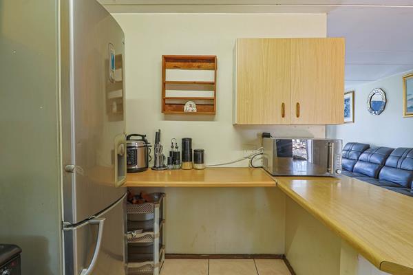 Kitchen is open plan living area with lots of cupboard space and it overlooks the living area.