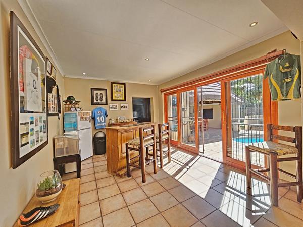 Step outside and youll find an entertainers dream: a covered Lapa with a built-in braai, a cozy boma, and a sparkling poolperfect for laid-back weekends and lively evenings under the stars. The expansive garden invites children to play freely while providing peaceful views from every room.