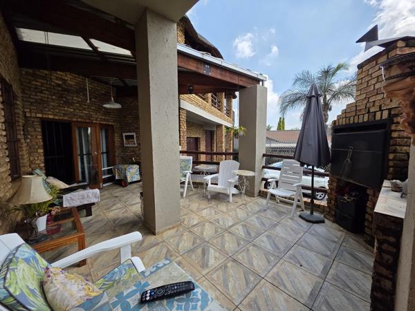 This spacious 4 bedroom house offers a holiday feel with its thatch roof and peaceful surrounds.