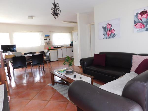 Dining room and lounge with sliding door, leading to an undercover patio and small private pet friendly garden - cats also welcome.