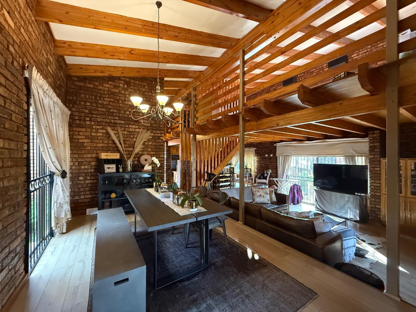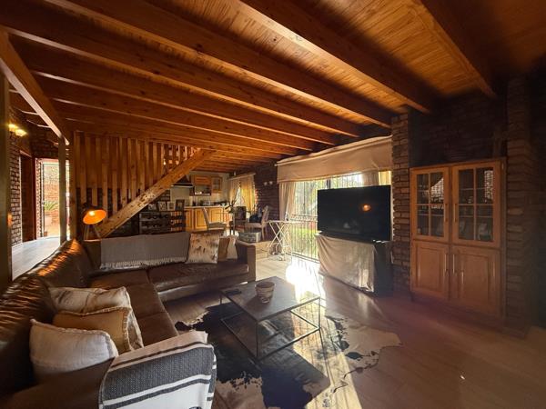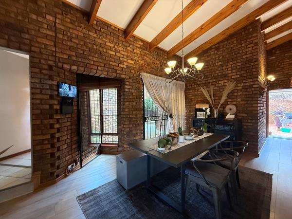This beautifully maintained family home in Moreleta Park offers charm, comfort, and thoughtful functionality. With a modern cottage-style design, the home features three spacious bedrooms, two and a half bathrooms, and a generous open-plan living area. A large study and an upstairs loft provide flexible space for an additional lounge or bedroom setup.