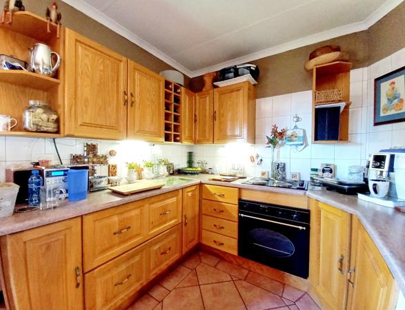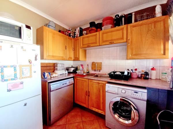 The heart of the home features an open plan living and dining area that flows effortlessly into the kitchen with ample fitted cupboards and space for appliances. The spacious living area opens onto a covered patio with built-in braai overlooking the neat easy maintainable garden, to relax and entertain.