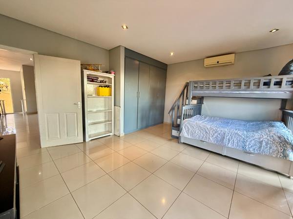 Off the scullery, a versatile large room offers flexible use as a a home office, gym, playroom or another guest bedroom. Downstairs includes two guest bedrooms or a bedroom and study, a bathroom, a guest bathroom and a double automated garage with extra storage space which leads to the flatlet. The flatlet has an en-suite bathroom, Kitchenette and lounge with sliding doors that open directly onto the garden, ensuring comfort and privacy for visitors or extended family. Income generated monthly ranges from R15 000 to R20 000 through Airbnb.