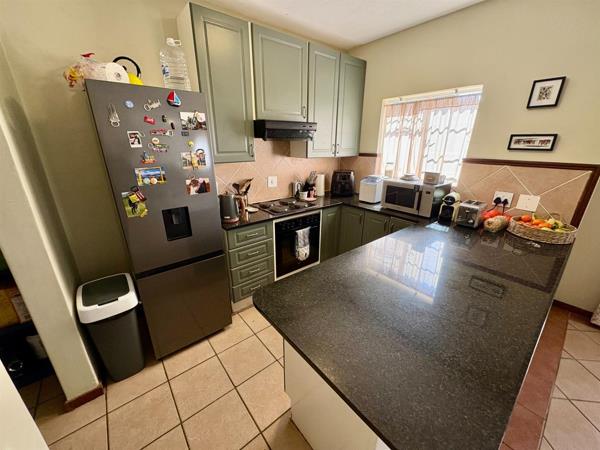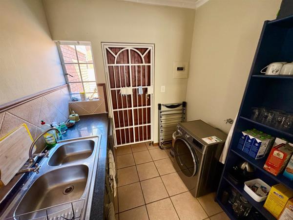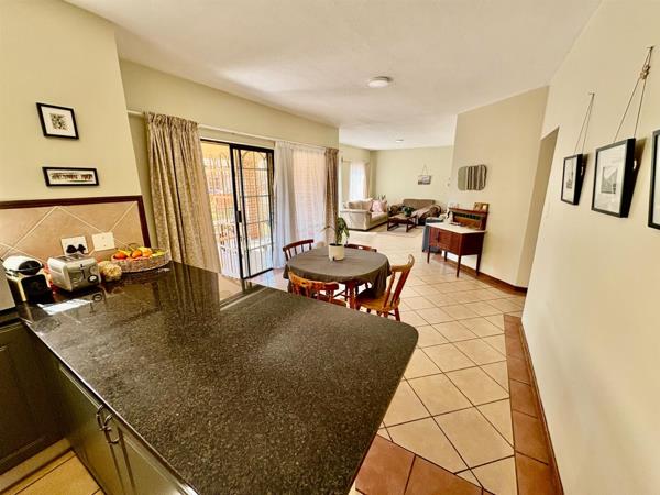 The modern kitchen boasts granite countertops, ample cupboard space, and a separate scullery with room for all your appliances, plus a back door leading to a neat courtyard.