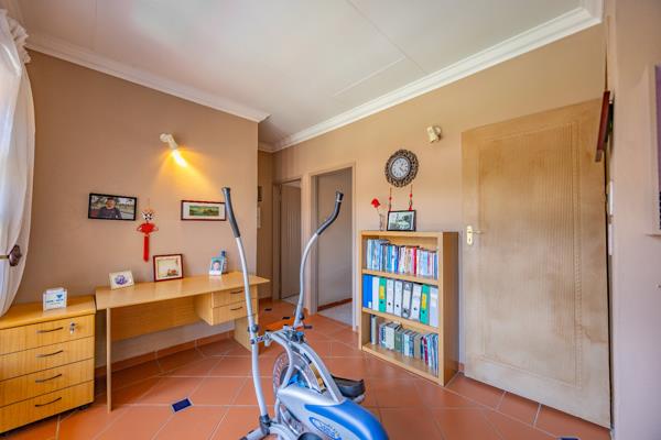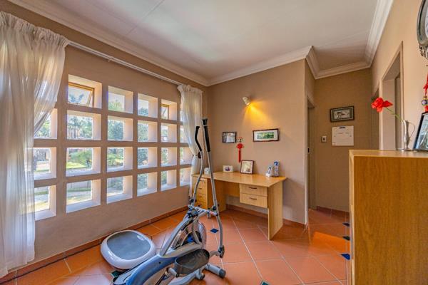 The heart of the home boasts a gourmet kitchen with granite finishes, two pantries, and a separate scullery. Stacking doors open to the lush garden, where a sparkling swimming pool and sun deck create the ultimate outdoor retreat. An indoor braai ensures year-round entertainment, while a dedicated office space provides the perfect setting for remote work or studies.
