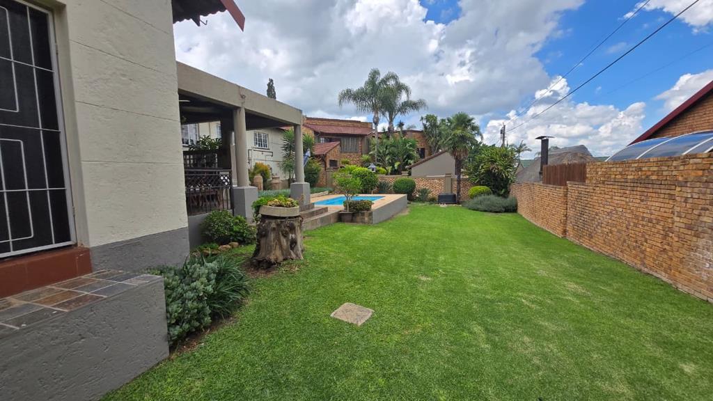 This spacious family home offers the perfect balance between comfort, functionality, and entertainment. With 350m² under roof on a generous 1,400m² stand, the property provides ample indoor living areas and a large outdoor space with a swimming pool and lush lawn ideal for both family living and social gatherings. The home includes a bar and lounge area with a coal stove leading out to a welcoming entertainment space, as well as a large dining room that can easily serve as an additional living area. A private office with its own door to the garden creates the perfect work-from-home environment.