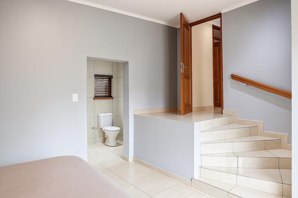 A guest room with private entrance and an en-suite (shower, washbasin and toilet).