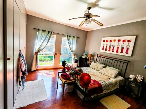 An inviting, easy flowing, open plan North facing home, offering space and comfort inside, with a braai and entertainment deck area outside, all in a 24 hour access controlled security estate. What more would one ask for? Neat and well maintained 3 bedrooms, 2 bathrooms with the full bathroom being ensuite and the second bathroom well appointed to the other 2 rooms as well as for guest use. Ample cupboard space in the bedrooms as well as additional storage in the hallway. Open plan lounge, dining and kitchen flowing onto the covered patio and outside are. The kitchen has ample cupboards and storage with lots of workspace and a separate scullery with space for 2 undercounter appliances and a huge corner pantry cupboard, with a door leading to the outside toilet and washing line. A double remote garage with direct access into the house for extra security and comfort, as well as space for extra appliances if need be.