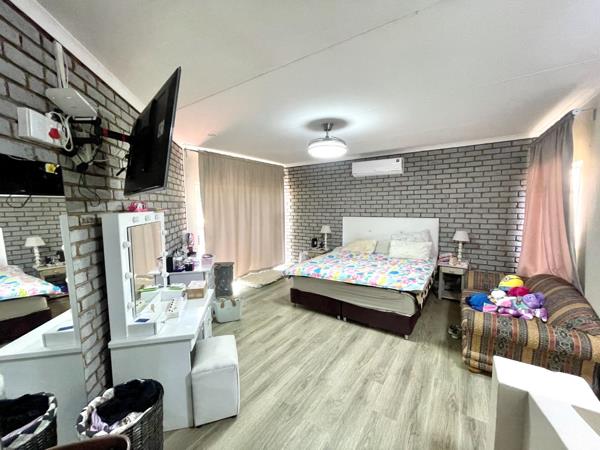 Inside, versatility is the theme. Three open-plan living areas flow seamlessly into a separate lounge, while a beautifully redone kitchen with granite countertops, breakfast nook, walk-in pantry, and separate scullery brings both style and practicality. A private study adds the perfect work-from-home setup, giving the home multiple layers of functionality.