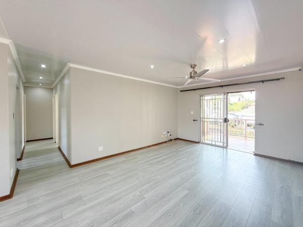 The open-plan living and dining area flows seamlessly to a covered patio with a built-in braai, where you can unwind and enjoy the most beautiful sunsets. The kitchen features a gas stove, space for two appliances, a single-door fridge and ample cupboards (with caesarstone tops).