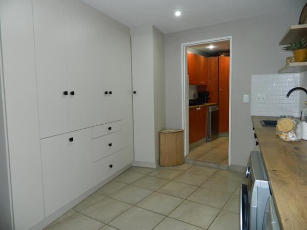Stepping into the Main House, you are welcomed by Open Plan living areas with a Large lounge, a Sunny Braai Room, Dining Room and Ultra Modern Kitchen with very spacious Laundry/Scullery area and more than enough cupboard space.