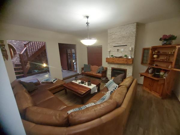 Step inside and be greeted by a warm entrance hall leading into spacious living areas filled with natural light. The lounge, complete with a cozy fireplace, sets the tone for family gatherings, while the dining area flows seamlessly into a well-designed kitchen featuring a gas stove, electric oven, and a walk-in pantry.