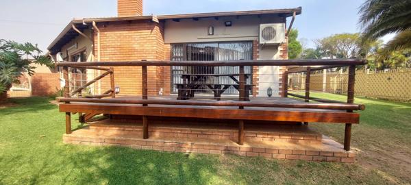 1 Lounge and entertainment area with built-in braai, Bar and sliding door leading out onto a deck
