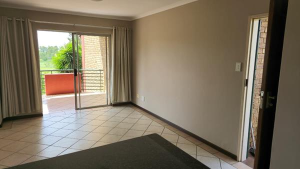 Natural light floods the lounge and dining areas, enhanced by large sliding glass doors that lead to a private balcony. This outdoor space offers scenic green views, perfect for relaxation or enjoying a morning coffee. The apartment features two comfortable bedrooms and a well-appointed bathroom, providing ample space for residents.