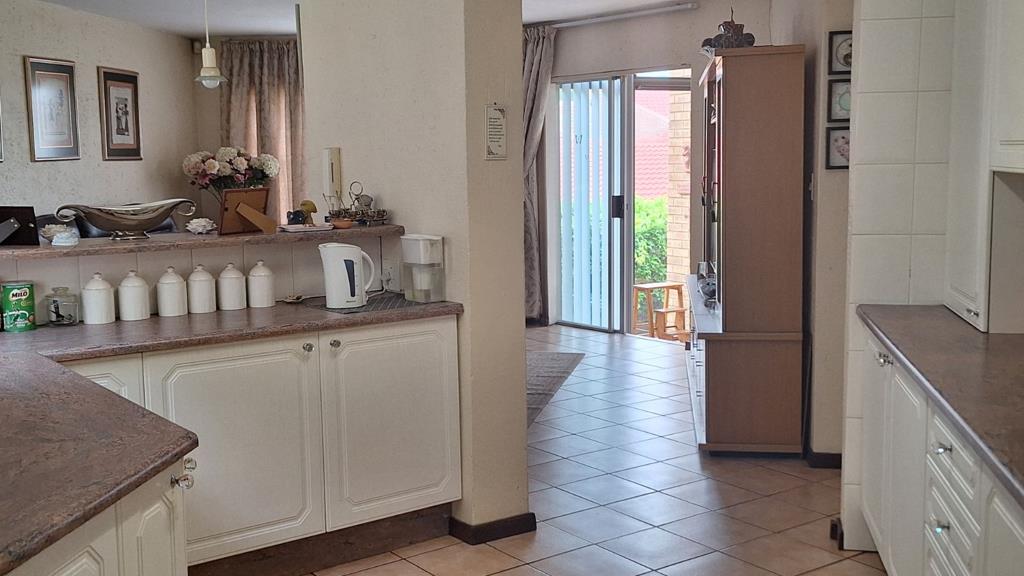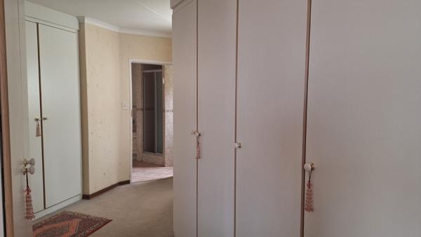 The main bedroom is a luxurious retreat, featuring 10 cupboard doors for exceptional storage, a private patio, and spectacular views over Pretoria East. The remaining bedrooms are spacious and versatile.