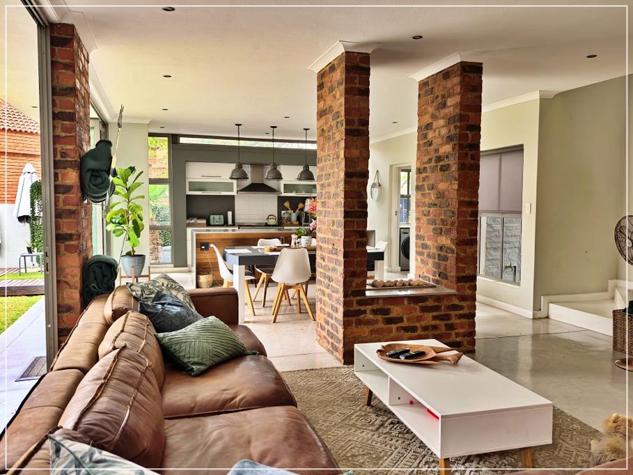 - Open-Plan Living: Gas fireplace, built-in bar, stacking glass doors to patio.