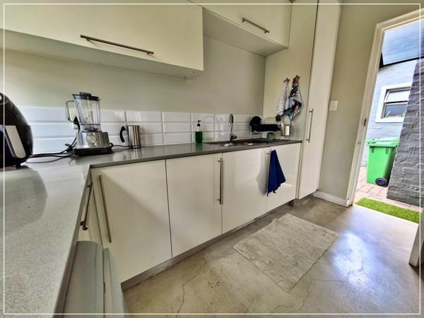 - Modern Kitchen: Smeg gaselectric oven, hob, island with basin, double-door fridge space, large scullery.