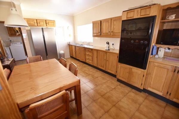A large, established garden sets the scene for outdoor living. The covered braai area with built-in braai is perfect for year-round gatherings, all overlooking the sparkling swimming pool.