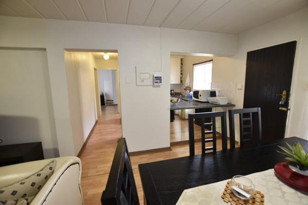 The spacious dining room and lounge flow effortlessly to a covered lockup patio, overlooking a maintained open garden