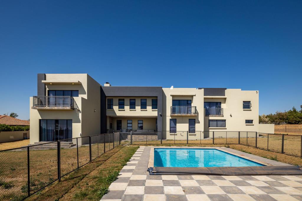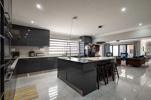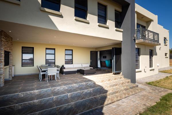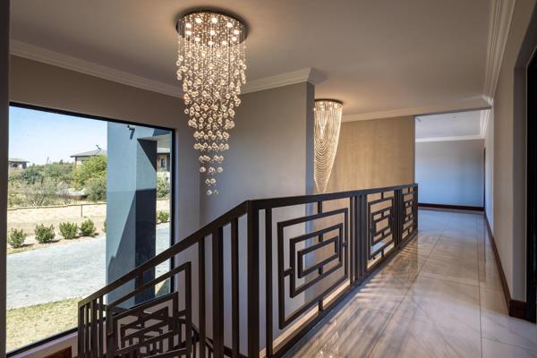 Contemporary Class with an eternal view. This architectural designed brand new house has all the contemporary features you expect. It sits on a 5000 square meter stand on the highest parts of Pretoria East in a quiet affluent estate close to Woodlands Mall. Several schools surround you with an elite private School right on your doorstep. The finishing is exquisite. It has 6 bedrooms with four being on suite, a gym, Library, Office, Swimming pool with heat pump, an advanced security system and a breath taking view.