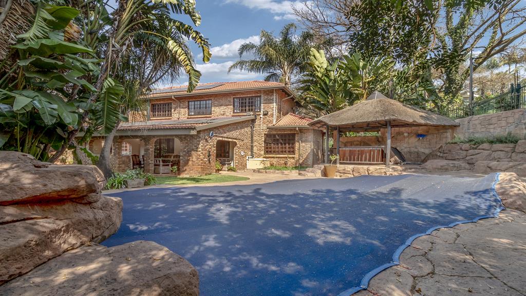 Outdoor living is perfect for entertaining, with a spacious lapa and built-in braai, a heated swimming pool with water feature and safety cover, as well as a jacuzzi. The lush garden is supported by a borehole and irrigation system.