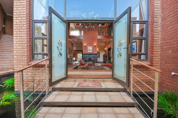 As you arrive, be greeted by two double garages with ample built-in cupboards, one tailored for adventurous 4x4 vehicles with its extra height to accommodate a rooftop tent on your vehicle. The spacious parking area and charming porte-cochère offer a warm welcome, ensuring convenience and style from the moment you step through the door. The home is secured by an automated electric gate, and a delightful goldfish fishpond.