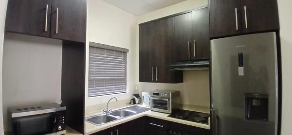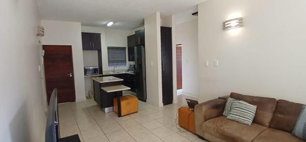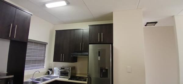 The well-thought-out layout includes two comfortable bedrooms and two bathrooms. The main bedroom features an en-suite bathroom, offering both privacy and convenience. The second bedroom is conveniently served by a bathroom located in the passage, making it easily accessible for guests or family members.