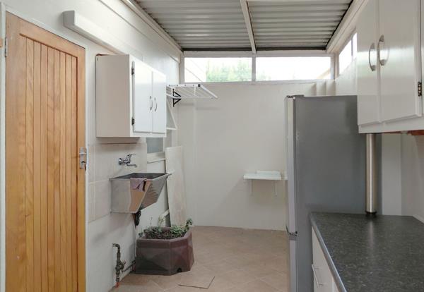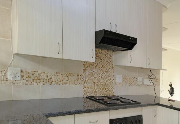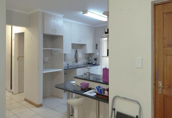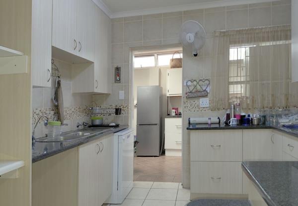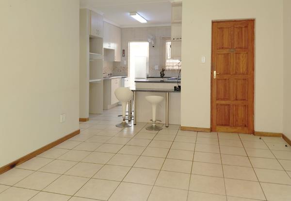 This home offers one north-facing main bedroom (ample cupboard space) with tiled floor, a second north-facing bedroom (tiled floor) and a built-in cupboard, two bathrooms with tile floors, a spacious lounge and an enclosed sunny porch, an open-plan kitchen with granite tops, built-in cupboards. Single automated garage. Well-kept low-maintenance garden. An enclosed courtyard (tiled) with connections for all appliances and a washing line. Automated garage door.