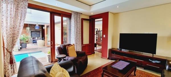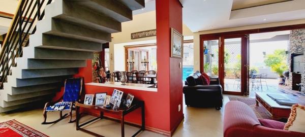 The home has three large bedrooms upstairs each with an en-suite bathroom. The main bedroom has a romantic gas fireplace, open plan bathroom with walk in closet and dressing area. From the bedrooms you have expansive views over Pretoria.