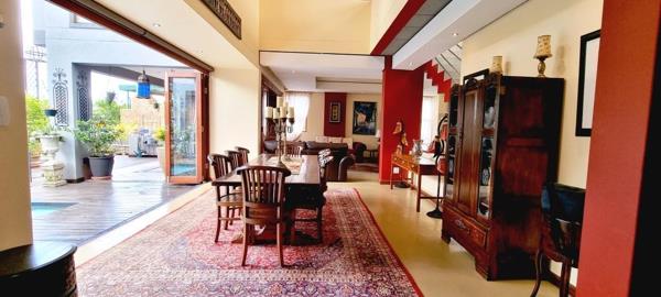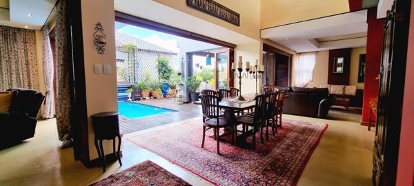 This spacious, entertainers home is built in a U-shape flowing around the central space of a decked swimming pool.