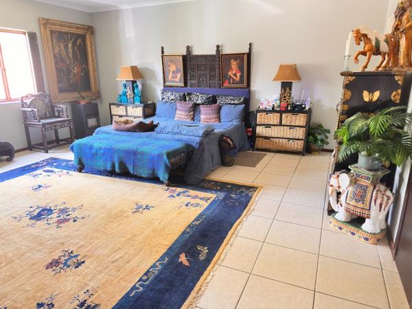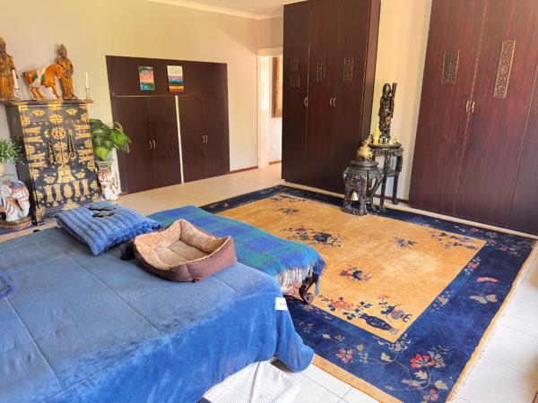 The spacious open-plan living area flows effortlessly to a covered patio with built-in braai, ideal for hosting family gatherings or relaxed weekend entertaining.