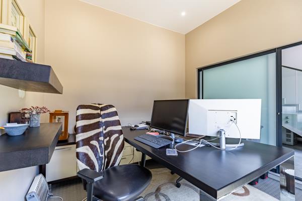 Security is paramount in this secure estate, featuring 24-hour security, CCTV surveillance, electric fencing, and an access gate with a security post and intercom system. The property is fibre-ready, ensuring high-speed internet connectivity for both work and leisure. Parking includes a double garage and two additional parking spaces, accessible via a paved driveway.