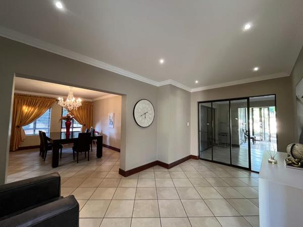 As you enter the home, you are greeted by a welcoming entrance hall that sets the tone for the rest of the residence. The downstairs area features a formal lounge, dining area, TV room, and an entertainment space complete with a cozy fireplace. The kitchen is a chef''s dream, equipped with a scullery, center island, breakfast nook, and high-end finishes. Additionally, there is an en-suite bedroom with a full bathroom on this level. Step outside to the covered patio with a built-in braai, overlooking a sparkling pool and garden - perfect for hosting guests or simply enjoying a peaceful retreat.