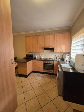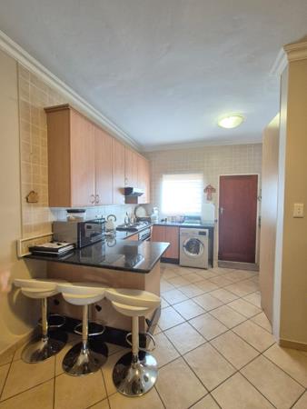 Outside, a covered patio with a built-in braai creates the perfect setting for relaxed entertaining. The pet-friendly garden, with permission, provides a secure space for outdoor enjoyment. An automated garage offers secure parking, while CCTV monitors the perimeter of the complex for added peace of mind. Residents also have access to a communal pool, enhancing the lifestyle benefits of the estate.
