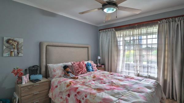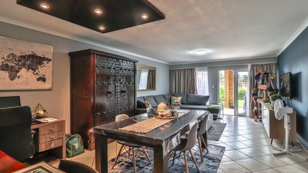 The open-plan lounge and dining area is spacious and opens up onto the covered patio area with built in braai.